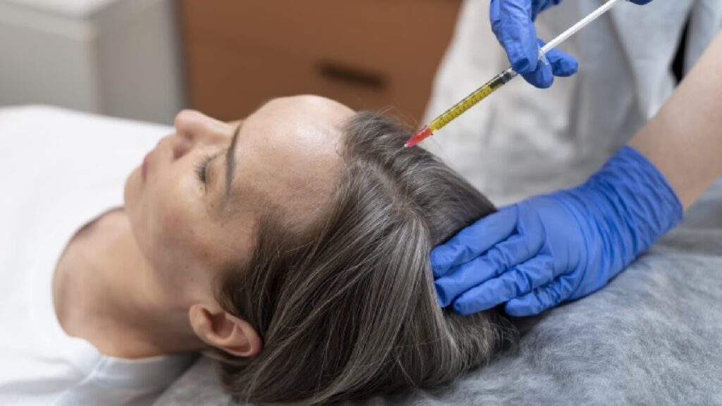 The exosome solution is then carefully injected into multiple sites across the scalp, focusing on areas of thinning or hair loss.